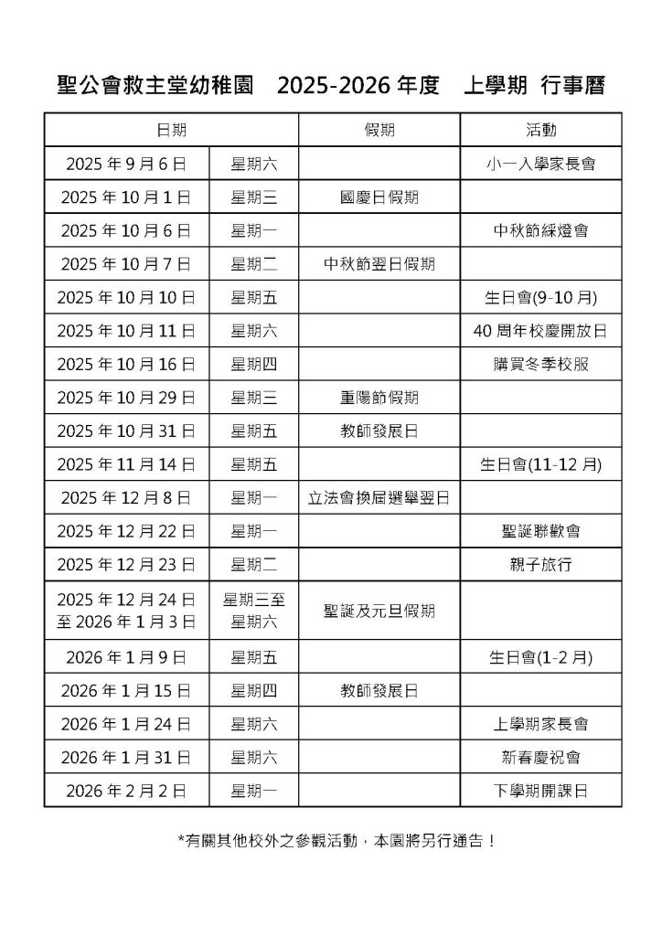 校曆表