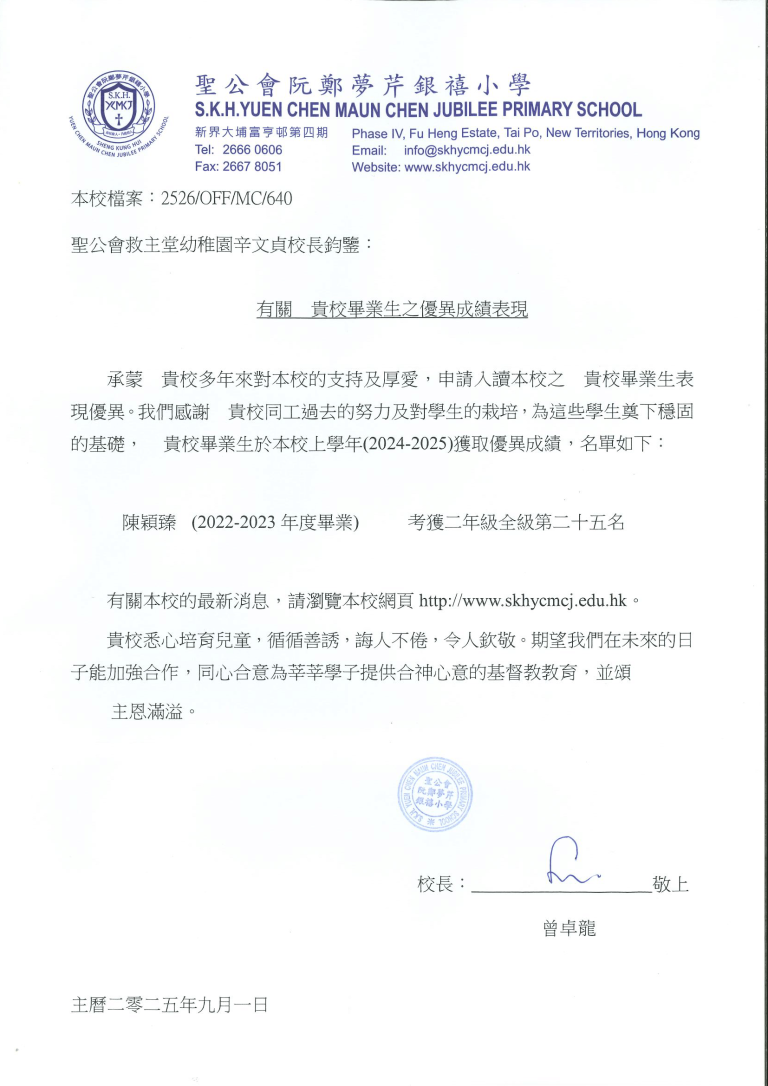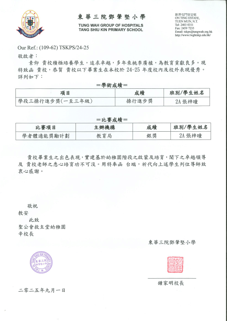 TWGHs Tang Shiu Kin Primary School2A 張梓曈 Sacred Heart of Mary Catholic Primary School陳雅樂、梁家齊 S.K.H. Yuen Chen Maun Chen Jubilee Primary School陳穎臻