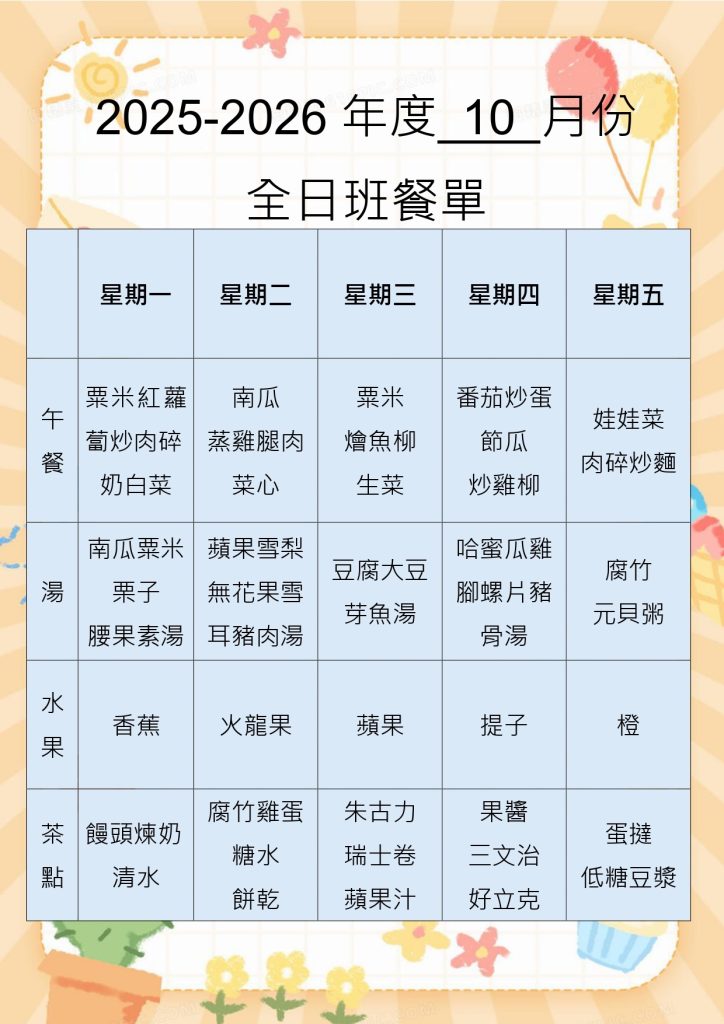 Monthly Lunch & Snack Menu